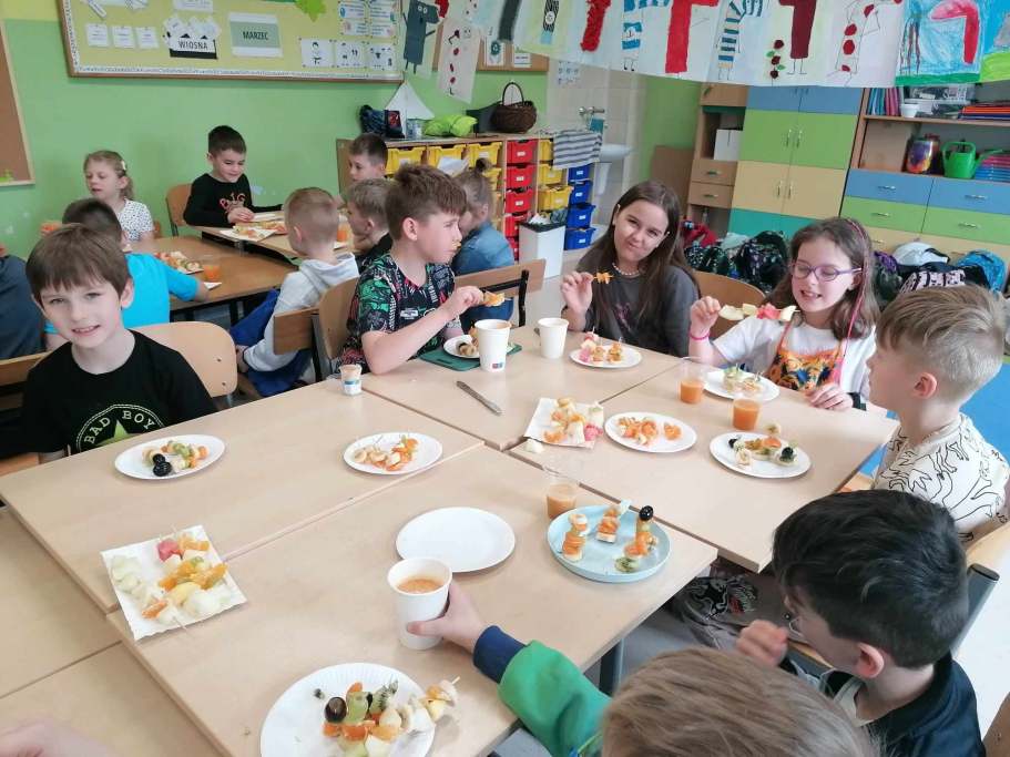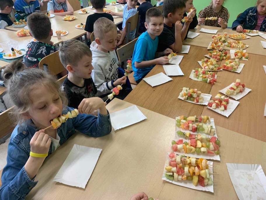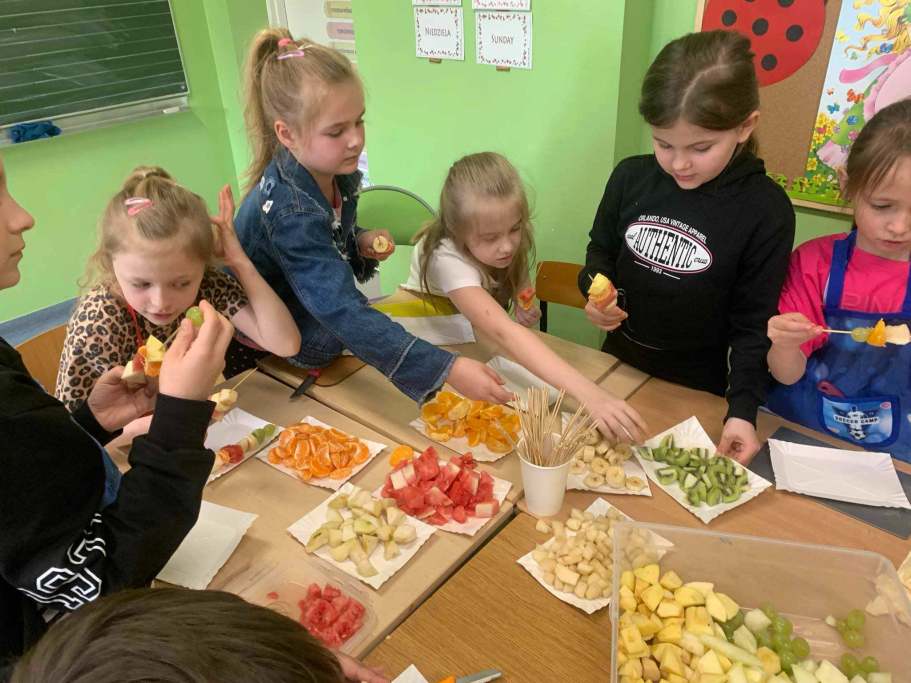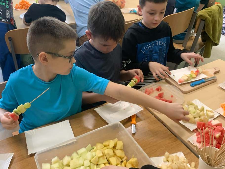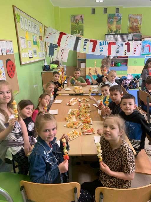 W naszej szkole Dzień Zdrowia obchodziliśmy od 8 do 10 kwietnia. Zaakcentowaliśmy trzy obszary, które są niezwykle istotne w dbaniu o zdrowie – dietę, ruch i opiekę medyczną. Uczniowie klas I-III degustowali warzywa i owoce. Poznawali nowe smaki i nazwy. Zapoznali się z piramidą zdrowego odżywiania. Dowiedzieli się, że wody butelkowane różnią się od siebie składem i smakiem. Razem z wychowawcami przygotowywali soki, kanapki, sałatki, szaszłyki i zdrowe przekąski z wykorzystaniem pełnowartościowych produktów.