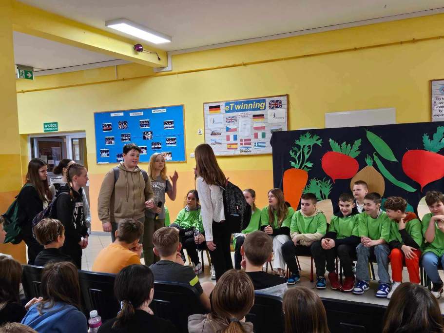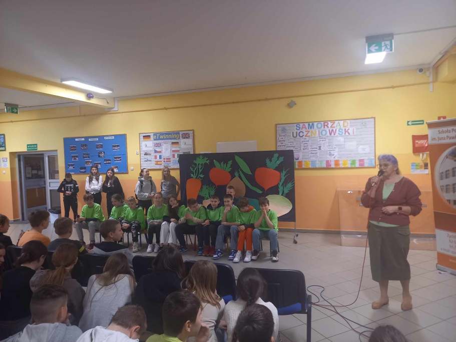 Przedstawieniem teatralnym w wykonaniu klasy szóstej zakończyliśmy obchody Dnia Zdrowia. Występ skierowany był do uczniów klas IV-VIII i skupiał się na zdrowym odżywianiu.