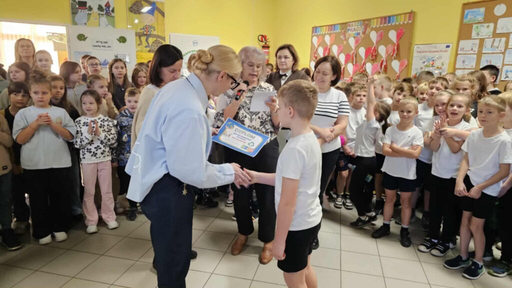 W listopadzie podsumowaliśmy szkolny konkurs „Mistrz segregacji odpadów”, w którym wzięły udział wszystkie klasy. Zadaniem uczestników było jak najszybsze i bezbłędne posegregowanie odpadów. Klasy stosowały różne strategie: przy koszach stali uczniowie pilnujący prawidłowej segregacji lub klasa dzieliła się na grupy, z których każda zbierała inny rodzaj odpadów, itp. Tytuł Mistrza segregacji odpadów zdobyły klasy IIa i VII, które najszybciej i bezbłędnie poradziły sobie z zadaniem. Otrzymały one pamiątkowe dyplomy, a uczniowie – drobne upominki. Dla dwóch klas z najsłabszym wynikiem przygotowano gry edukacyjne, aby uczniowie mogli dalej ćwiczyć prawidłową segregację odpadów.